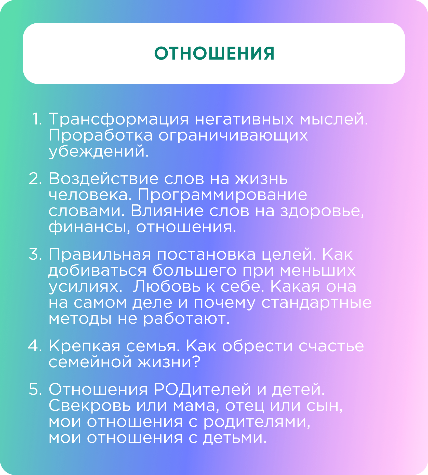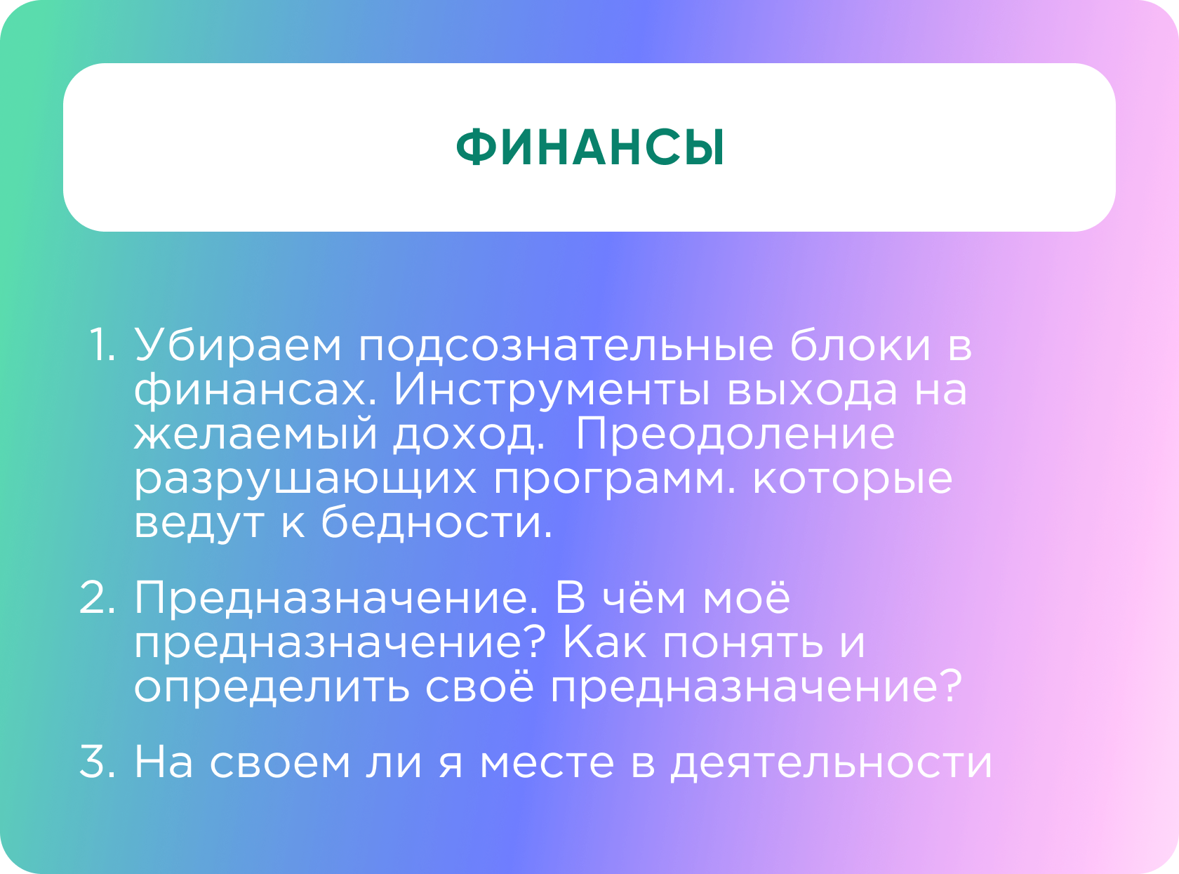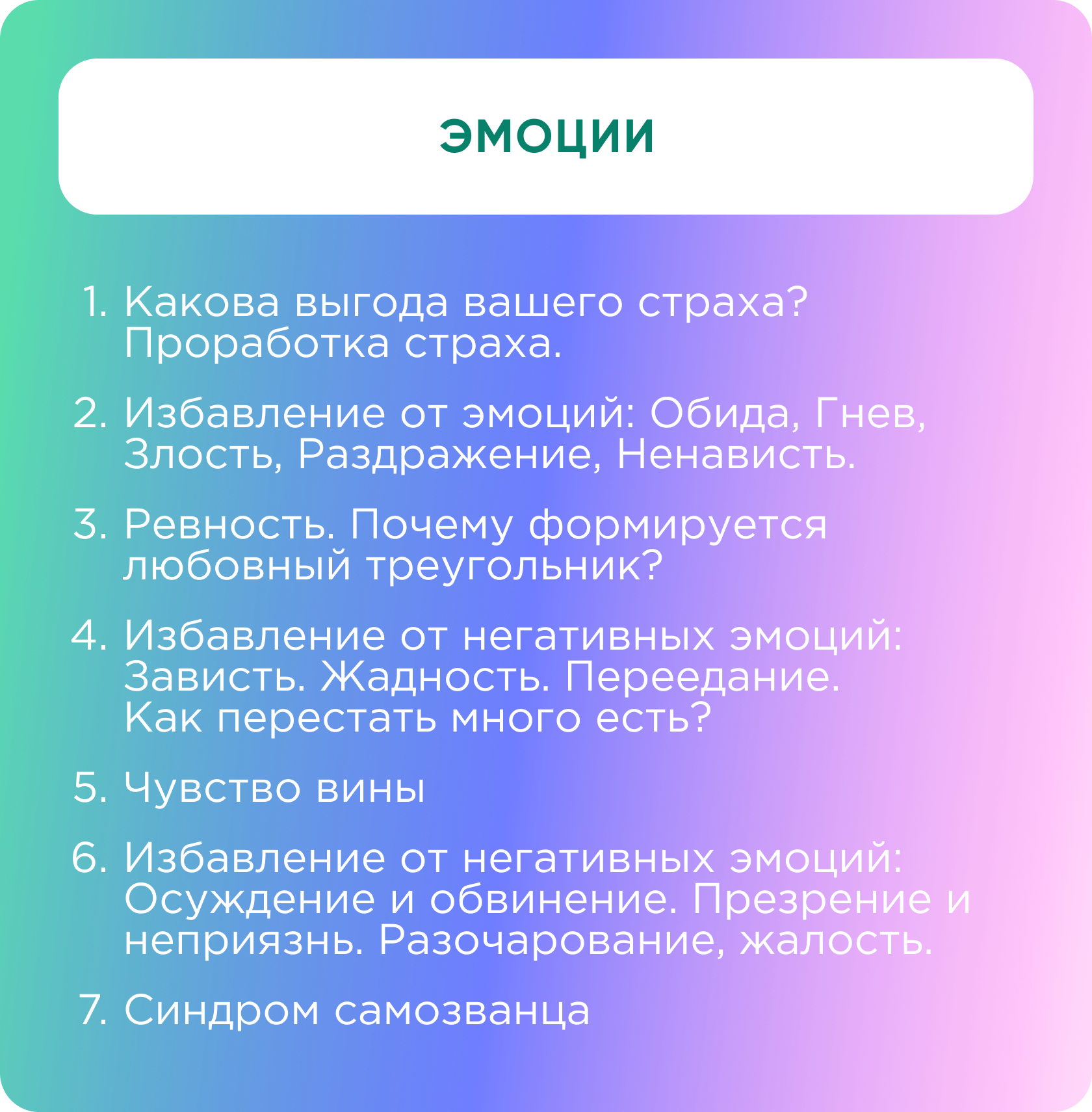 Домашния задания. С помощью практики вы научитесь настраивать себя на запланированный лично вами результат. Получите инструменты для работы над собой и достижения желаемого, опробуете их и выберете лучшие.